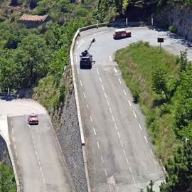 The fifth day was arguably the one everyone had been waiting for. “We were told we were going into the mountains, and we’d be staying overnight,” says Chris. “The transporter couldn’t go up so there were two low-loaders that we ended up providing drivers for. We did the scene through the houses in about 36 degrees. There were lots of extras there, but the woman leaning out of the window was actually a local. No one knows if that road was used originally, but it was the natural route into Monte Carlo, and we filmed there for about four or five hours. “From there it was another hour’s drive uphill to the Col de Turini,” Chris continues. “We arrived to the scene crew filling the road full of fake snow to make the scene – 1750 square metres of liquid paper, which sets like Papier-mâché and churns up like snow when you run on it.”