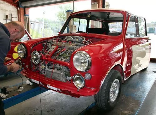 The scene doesn’t depict the Abingdon garages, but rather the initial development of the Mini Cooper some three years earlier. “Cooper did not produce the rally cars of course, Cooper is the man that put a bigger engine in it, then Abingdon got hold of it,” says Chris. “So it’s actually fairly true to life. Mike Cooper was actually very adamant that it should not be filmed as if Cooper had done the Monte Carlo. Instead it followed John Cooper’s thoughts from 1961.