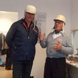 Day two saw the garage scenes being filmed, where John Cooper is told that his idea to create a performance Mini “will never work.” Look carefully and you’ll see Dave Thomas and John Cressey among the team of mechanics. Brian Harper’s Cooper S is in the background, as is a Surf Blue Mini Super owned by French-based Swedish enthusiast Jan Pettersson (who drove the car to this year’s Irish IMM!). Many of the parts in the background were supplied by Mini Sport, but set dressing such as the signs were specially made, and the ramps were constructed from wood. This was also the day the original ACM timecard came out. “We don’t know if it was the original or a copy, it was that good,” Chris comments.
